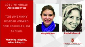 Investigative reporters Margie Mason and Robin McDowell of the Associated Press have won the 2021 Anthony Shadid Award for Journalism Ethics from the Center for Journalism Ethics at the University of Wisconsin–Madison for their investigative series on palm oil labor abuses.